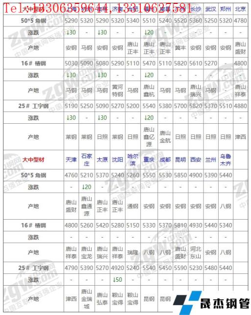 全國22個主要市場16# 槽鋼平均價格5264元/噸,較上個交易日下調(diào)4元/噸。