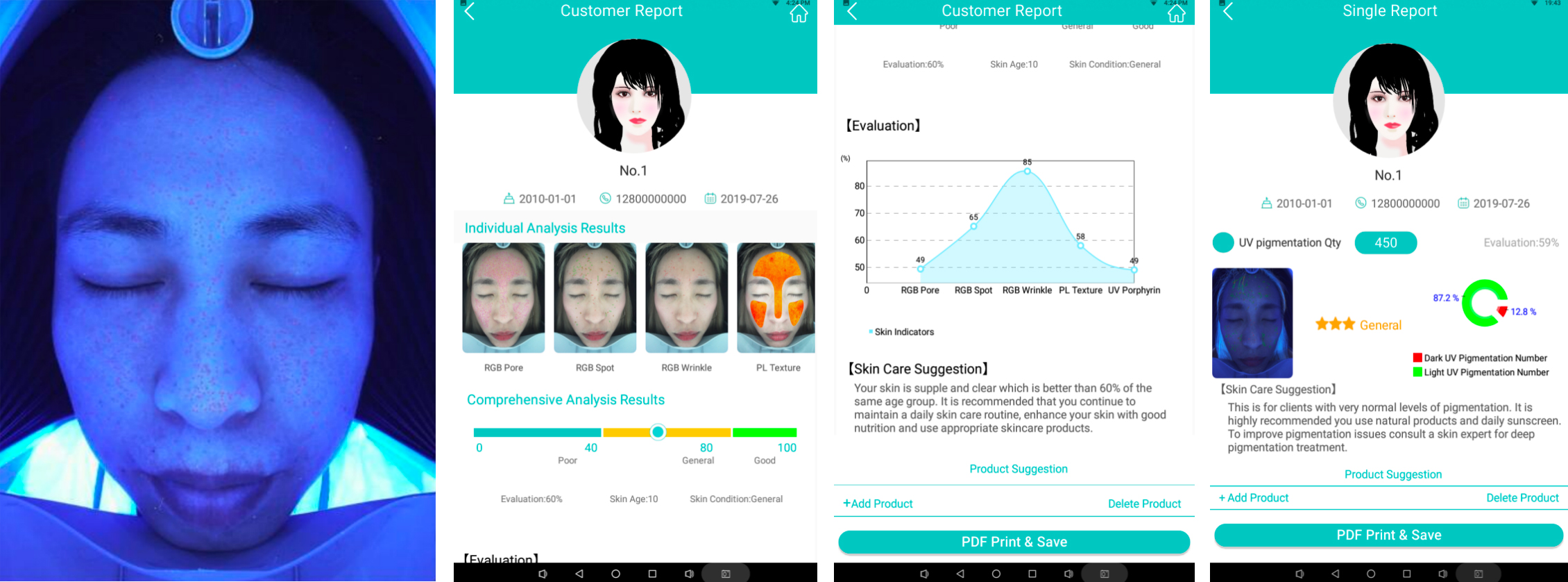 深表層12大皮膚問題 手動,自動雙模式調節(jié)分析區(qū)域,全方位無死角 高速分析,僅需15秒
