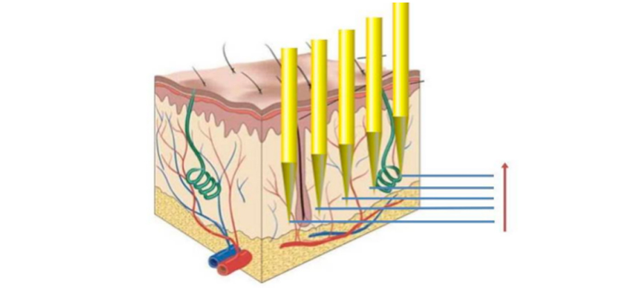 微針針尖發(fā)射射頻能量,可精準加熱皮脂腺、毛囊等皮膚組織。一方面,它能破壞痤瘡丙酸桿菌生存環(huán)境,減少炎癥;另一方面,它可以調節(jié)皮脂腺分泌,降低油脂產生,從根源上減少痤瘡形成,還能收縮毛孔,改善皮膚質地。